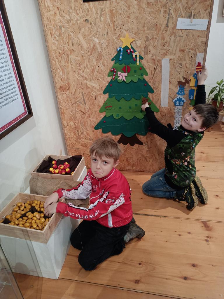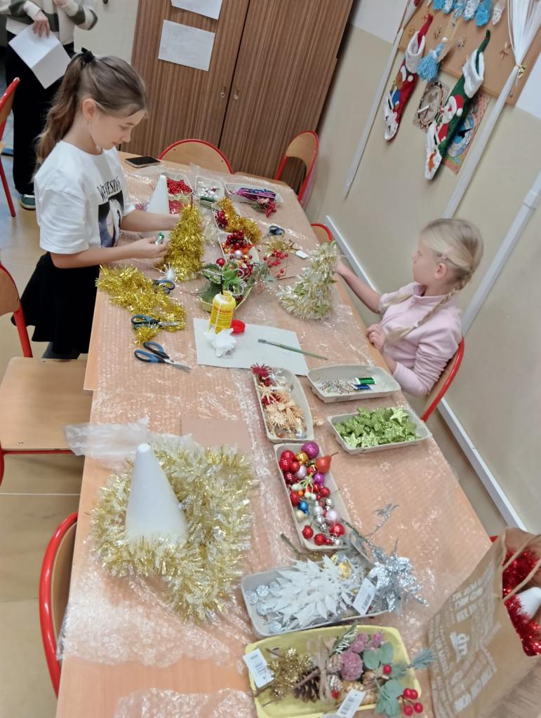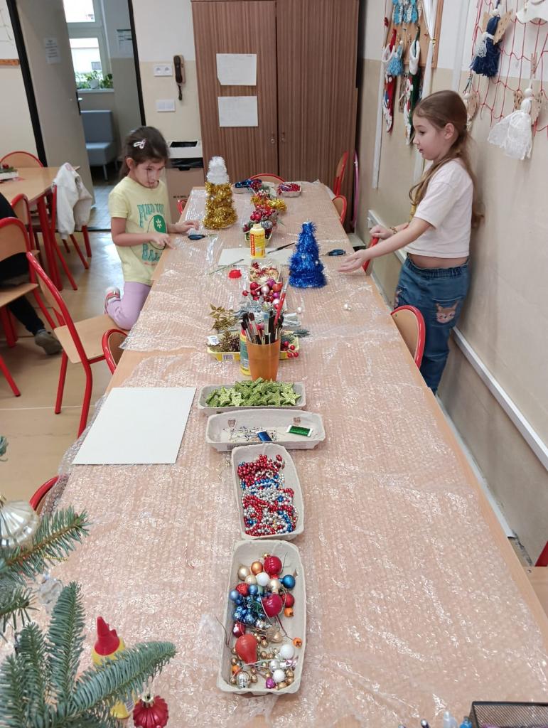 Vánoční tvoření patří mezi nejoblíbenější aktivity v družině a letos tomu nebylo jinak. Děti vyráběly vlastní vánoční stromečky z polystyrenových kuželů. Po natření lepidlem Herkules je omotávaly barevnými vánočními řetězy a doplňovaly drobnými ozdobičkami na drátku. Vznikla tak řada originálních, třpytivých a krásných dekorací, které dětem udělaly velkou radost.