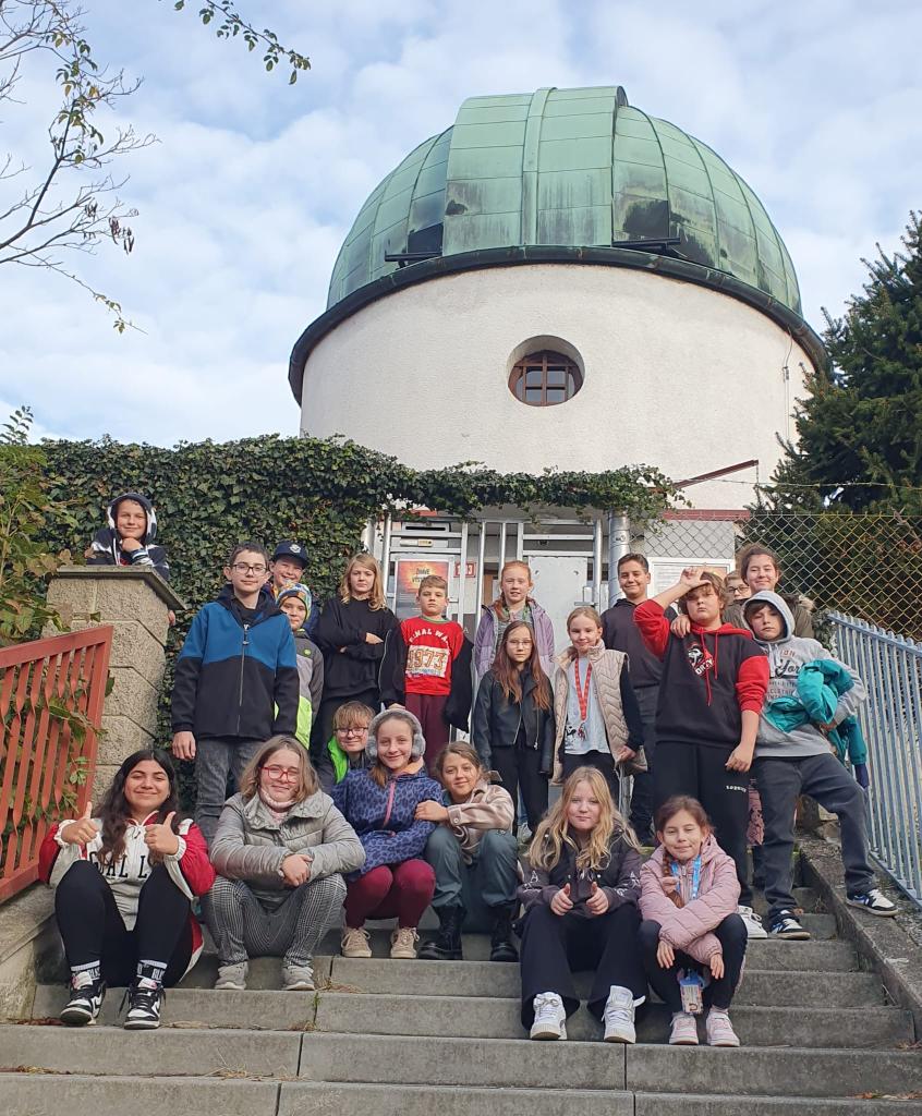 V pondělí 21. října si kluci a děvčata z 5. A s paní učitelkou Pekrtovou, udělali dopolední výšlap na slánskou hvězdárnu. V příjemné prostředí „Hvězdárny Jaroslava Trnky“ při velmi zajímavé přednášce vedené panem Zbyňkem Hanzlem, doplněné projekcí sluneční soustavy, si žáci zopakovali v souvislosti s právě probíraným učivem své znalosti z přírodovědy o Slunci a blízkých planetách. Po besedě následovala prohlídka výstavního prostoru s fotodokumentací historie slánské městské hvězdárny (založena 1963). V závěru návštěvy vyzkoušeli být chvíli astronomy, když měli možnost velkým hvězdářským dalekohledem pozorovat oblohu. Není to jediná akce v těchto dnech. V rámci prevence navštívili žáci Hasičský sbor Slaný a pracoviště slánské Městské policie. Na listopad je připravena naučná vlastivědná vycházka po památkách Královského města Slaný.