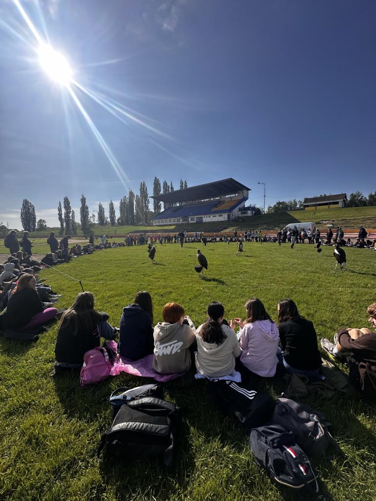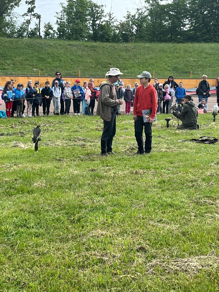 Druhou část jsme směřovali na poznávání života dravců v přírodě a jejich ochranu. Spojili jsme se se společností Zayferus, která se věnuje způsobu života dravých ptáků a jejich ochraně. Přednáška spojená s letovými ukázkami a různými soutěžemi pro děti byla na ploché dráze Slaný.